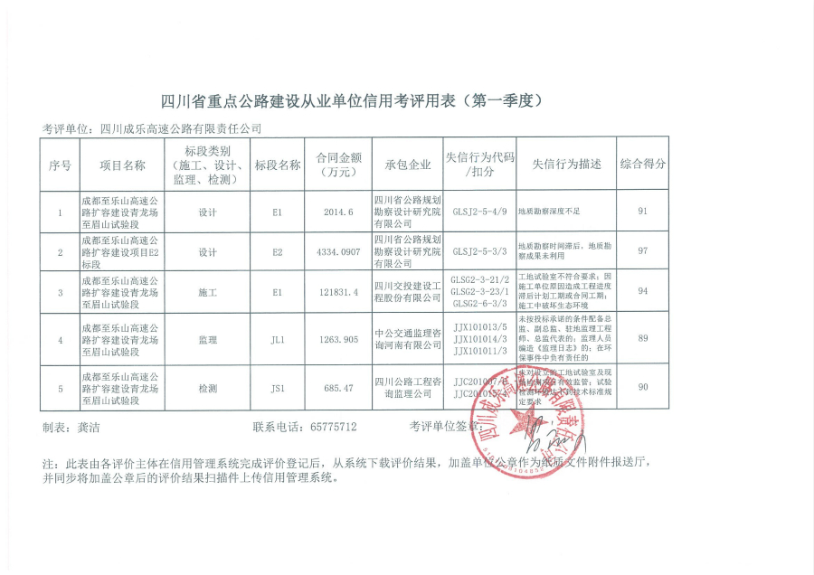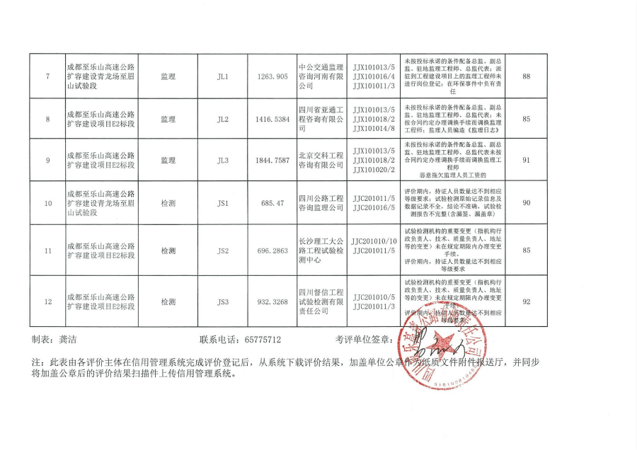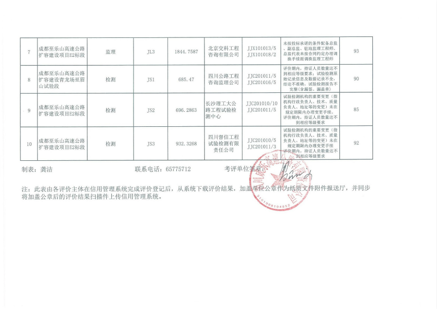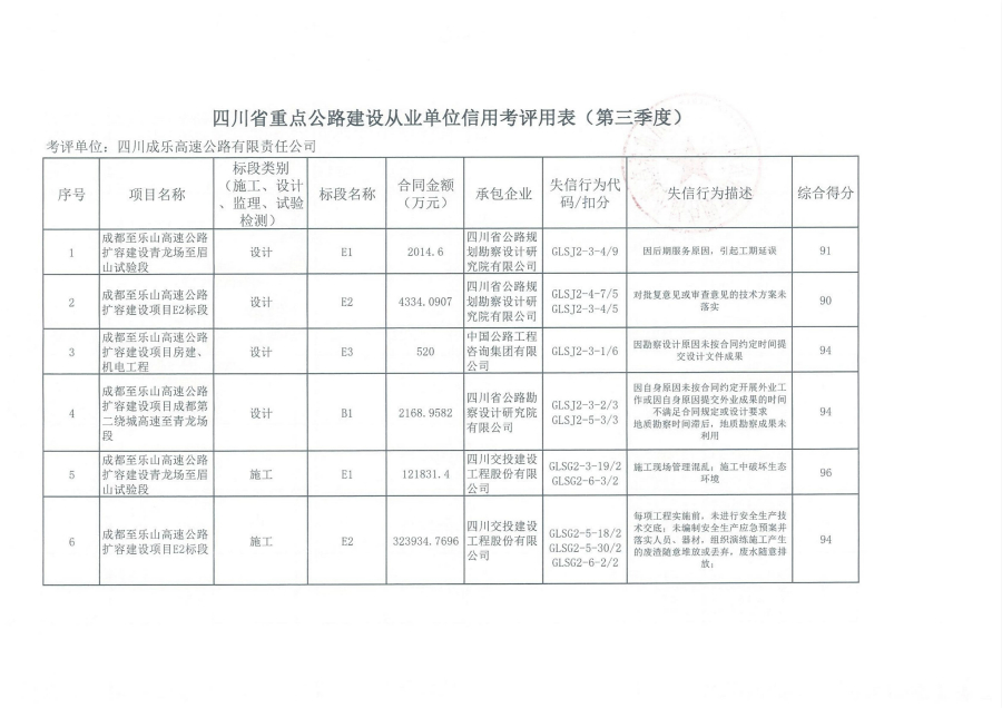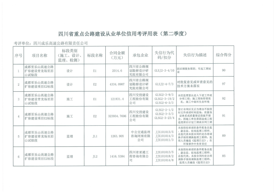 四川省重点公路建设从业单位信用考核评价