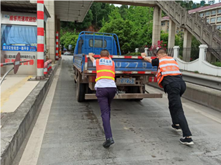 5月9日,一辆川Z籍货车在成乐高速公路乐山站出口内广场处抛锚,无法驶出收费站