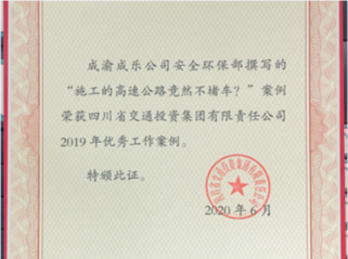 近日,由成乐公司安全环保部撰写的《施工的高速公路竟然不堵车?》荣获省交投集团2019年优秀工作案例