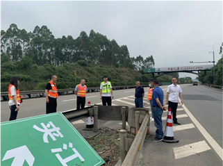 近日,成渝公司安全环保部副部长张显军、郭靖赴成乐扩容建设项目夹江段现场指导半幅封闭高边坡施工交通组织方案