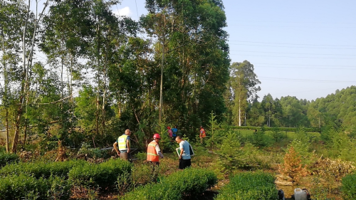 近日,成乐运营分公司接到夹江供电局来电,称成乐高速公路夹江收费站附近800米左右专线下方有一片林地,植被茂密,顶端与专线齐平,对供电设施会造成严重影响,存在极大安全隐患。公司高度重视,立即安排相关部门进行处置,进过勘察该处植被确实存在严重安全隐患,决定采取全部砍伐的方式进行处置。公司立即联系绿化单位进行砍伐清理,经过5个多个小时的连续奋战,树木被砍伐完毕且妥善处置,保障专线下方无高大植被的影响,确保了夹江收费站的正常用电。