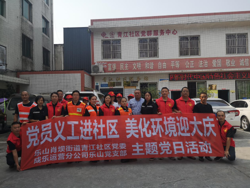 为迎接新中国成立70周年,助力乐山市“双创”工作,乐山党支部将“不忘初心、牢记使命”主题教育与“双报到”志愿服务有机结合,9月27日,联合青江社区开展了“党员义工进社区、美化环境迎大庆”的主题党日活动。
