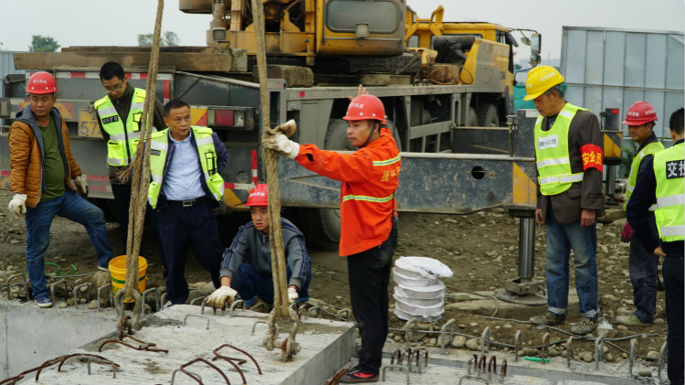 自开工以来,在历经多日的努力奋战,在工期紧张、安全压力大和运梁道路交通复杂的情况下,为确保预制梁板的运输和安装能够顺利进行,成乐公司要求参建单位统筹安排、合理组织,不断优化施工方案、责任到人,并采取周密的措施确保架梁顺利安装。一是结合工程施工的特点,提前科学制定应急预案,对现场管理和施工作业人员进行全面安全技术交底,确保架梁安全;二是梁板运输过程中梁场主要管理人员必须全程进行押运,确保运梁安全,架梁过程中项目部及总监办安全负责人必须全程旁站,排除施工现场安全隐患;三是加强与地方交警、路政的协调配合,最大可能减小运梁、架梁过程中对地方交通的干扰。各参建单位积极克服梁板架设前的重重困难,保证了梁板架设工作有序推进。