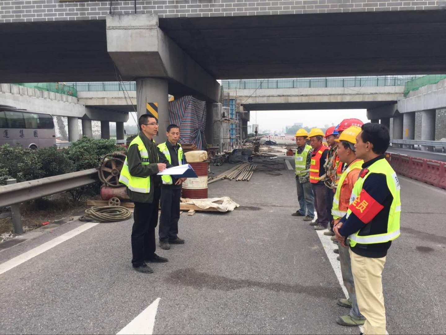 近期,成乐扩容项目试验段将陆续进入涉路施工阶段。为积极推进成乐扩容建设项目安全生产管理工作,成乐公司组织试验段总监办、项目经理部相关人员前往试验段眉山互通中桥中墩涉路施工现场联合开展安全技术交底工作。针对涉路施工现场施工人员的安全风险点及安全防护措施进行了技术交底并对现场安全专职人员岗位责任落实情况进行抽查。成乐公司对施工现场的安全生产做出了具体要求,一是必须高度重视安全生产工作,强化责任落实,做到定岗定人。二是必须加大安全隐患排查力度,做好隐患整改工作,有效防范和遏制安全事故的发生。三是必须加强安全教育培训,特别是现场施工人员要增强安全意识,时刻警醒,确保不发生安全生产事故,为成乐扩容建设项目安全生产形势持续稳定发展打下坚实基础。