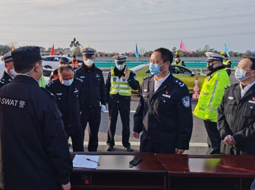 1月29日17时,省公安厅党委委员、副厅长袁刚在省公安厅交警总队总队长叶建昆陪同下,深入成乐高速公路督查指导疫情防控工作。