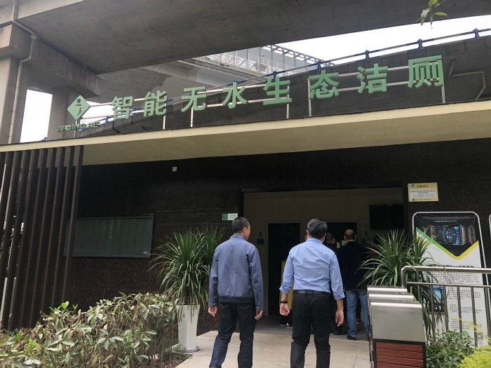 考察组一行先后在重庆建川博物馆、九龙坡广场等地对现场投入使用的无水生态厕所进行了考察。随后前往生产厂家,就产品的性能、工艺、运维成本等细节进行了深入交流。