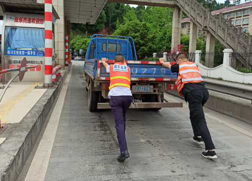 成乐运营分公司乐山站当班班长发现情况后,立即上前询问缘由,经了解,该车准备前往乐山苏稽镇拉货,但由于出站时在收费广场突然抛锚,无奈停留在原地。为确保收费道口畅通和驾驶员的人身安全,班长立即做好警示工作,并及时与当班人员一起将3吨多重的货车推行到收费站外广场50米外的安全地带停放,并及时帮忙联系附近的汽车修理厂。驾驶员对收费站工作人员的帮助称赞不已,连声道谢。成乐运营分公司一直坚持以实际行动践行国企担当和社会责任,用专业的能力和优质的服务展示了良好的企业形象。