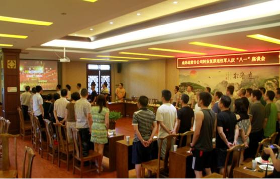 8月1日,在建军90周年到来之际,公司工会为了充分发挥工会职能,组织公司退伍军人和现役军人家属召开了一场别开生面的转业复原退伍军人庆“八一”座谈会。会议由公司副总经理、工会主席谢兴华主持,公司党委书记、总经理石树钢参加了会议。