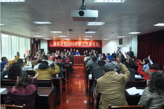 2015年12月25日上午,在成乐公司机关会议室召开了成乐公司2015年职工代表大会,公司职工代表共70人参加了此次会议,会议由公司副总经理、工会主席谢兴华同志主持。会上,人力资源部经理高传芬同志对“三项制度改革”的相关制度进行了解读和说明。随后,各代表团进行了分组讨论审议,并将讨论结果在大会主席团会议进行了汇报。经全体参会职工代表以举手表决的方式,通过了《劳动合同用工管理办法》、《员工试用期管理办法》、《富余人员分流安置管理办法》、《员工教育培训管理办法》、《管理人员选拔任用试行办法》、《管理人员管理办法》、《收费人员奖惩实施细则》、《监控人员奖惩实施细则》、《工资管理办法》、《绩效考评管理制度》。最后,公司党委书记、总经理石树钢同志作了重要讲话,进一步阐述了“三项制度改革” 内容、作用和重大意义,以及难点重点,并强调:“三项制度改革”关乎员工的切身利益,本次审议的10项制度是在过去相关制度的基础上进一步完善,是公司十多年来管理成果经验的智慧结晶,也是公司未来5年运营管理机制上新的操作办法。员工代表们要认真解读,广泛宣传。同时提出:明年的初步工作思路是以“三项制度改革”为载体,发挥改革的突破性和先导性,增强创新精神,着力推进管理规范化、制度化,重点推进优质文明服务更成熟更定型,确保公司更加健康可持续发展。