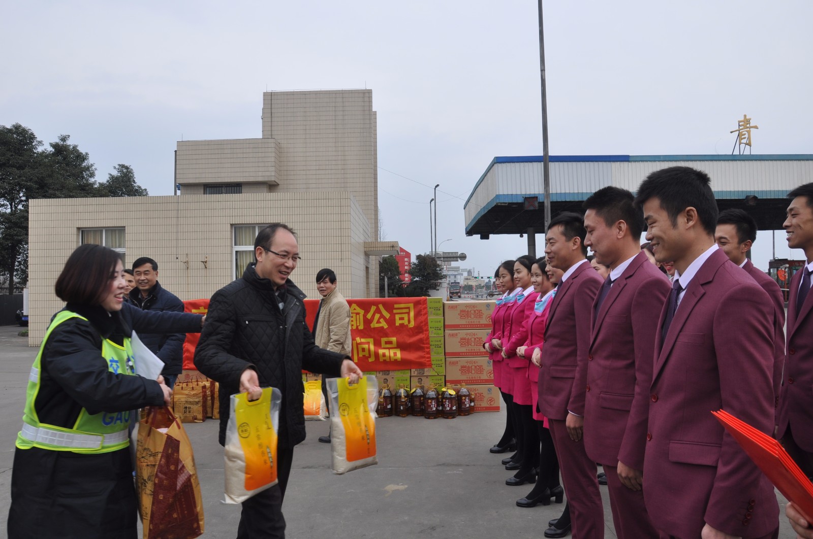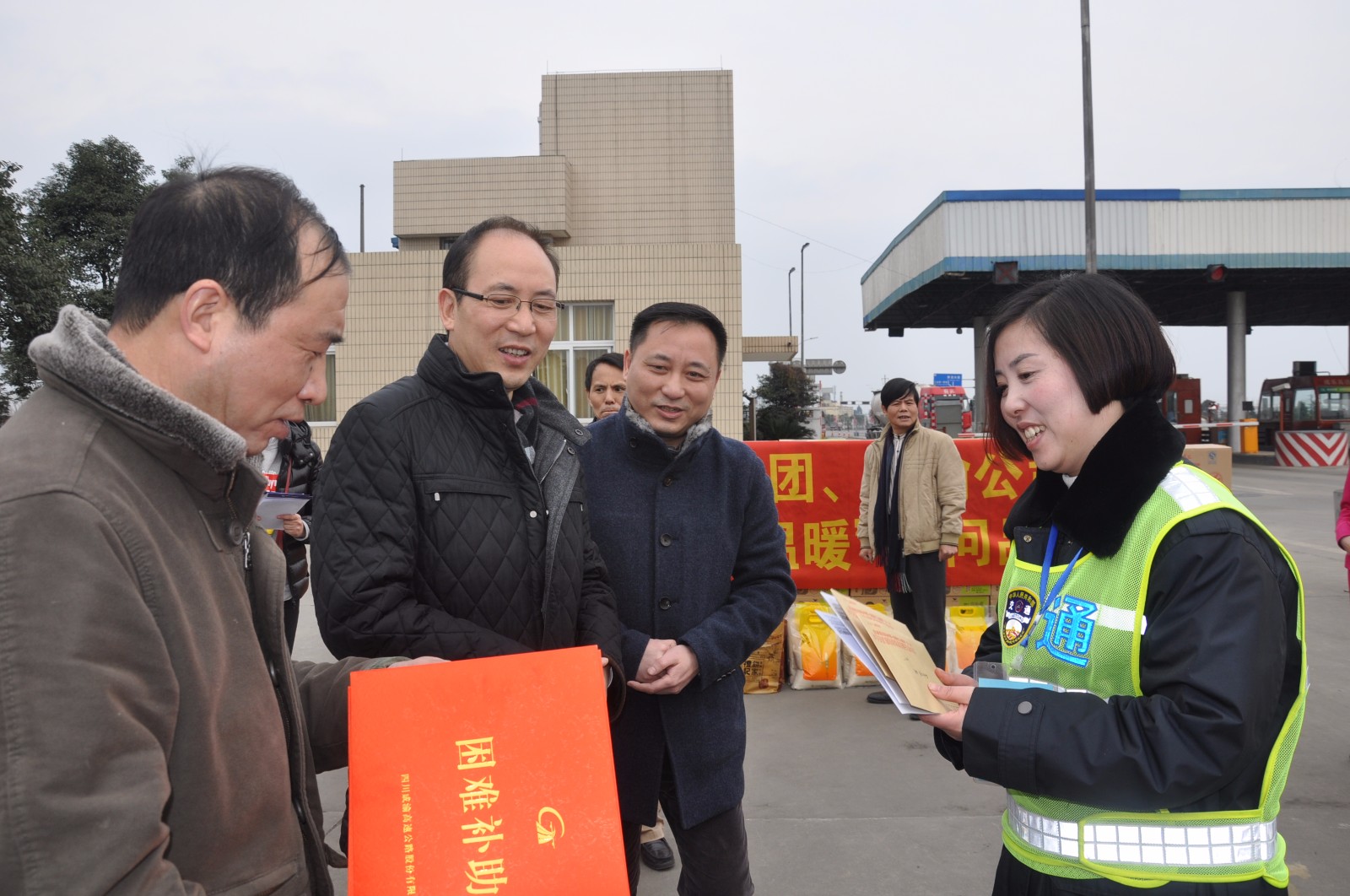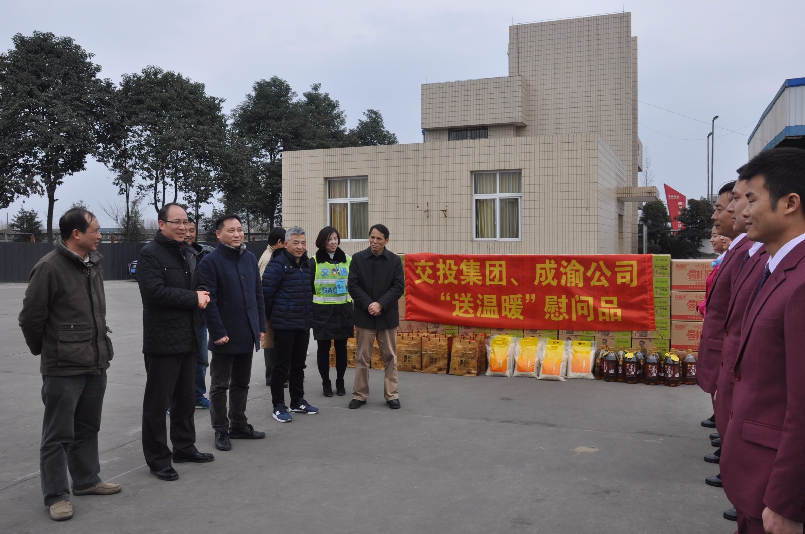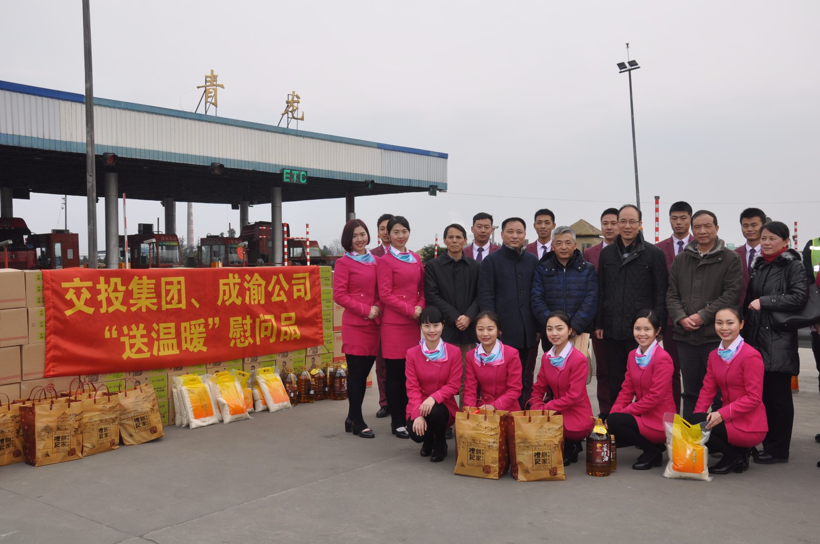 1月26日,交投集团党委委员、董事贺晓春,投资发展部副部长邬德政,成渝公司监事会主席冯兵,投资发展部经理卢晓燕等领导,在成乐公司党委书记、总经理石树钢,副总经理、工会主席谢兴华等的陪同下,对我司安全生产工作进行了检查,并来到青龙收费站慰问了困难职工、困难党员代表和收费站一线的员工们,为他们送去了慰问金和米面油等慰问品。贺董对坚守一线、辛勤工作的员工表示了感谢和慰问,并对我司营运管理以及安全生产工作给予了充分肯定,并希望我司要继续做好安全生产工作,确保春运期间的安全通畅。