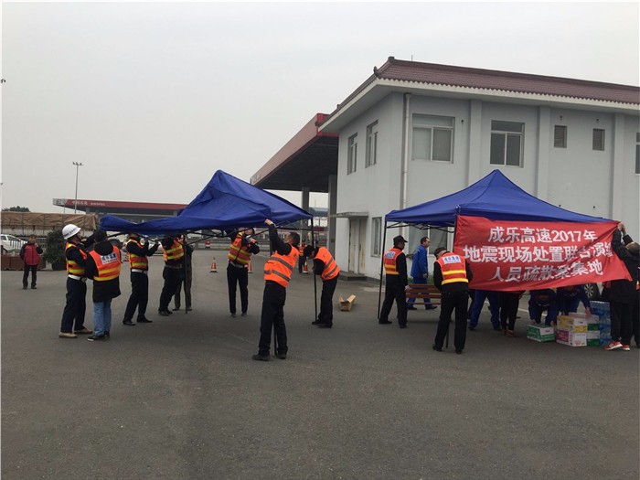 为提高公司员工防震减灾意识和应急救援能力,检验应急救灾队伍整体素质和协调联动水平,提高地震应急救援工作效率32日,成乐公司联合高速交警、交通执法大队及眉山服务区商家40余人开展了2017年成乐高速公路应急救援演练活动