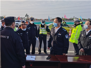 1月29日17时,省公安厅党委委员、副厅长袁刚在省公安厅交警总队总队长叶建昆陪同下,深入成乐高速公路督查指导疫情防控工作