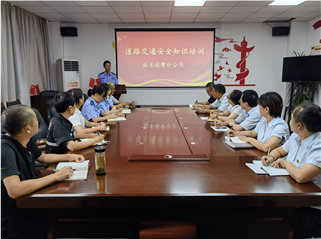为强化员工道路交通安全意识,切实做到安全文明出行,8月24日上午,成乐运营分公司特邀高速交警四分局四大队大队长王林为乐山片区员工进行交通安全知识培训