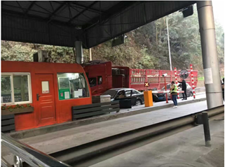 2017年1月2日17点45分,一货车在进入观音收费站匝道后因刹车失灵,撞上了在前面排队等候缴费的两辆轿车,并造成了观音滩收费站计重设备、收费顶...