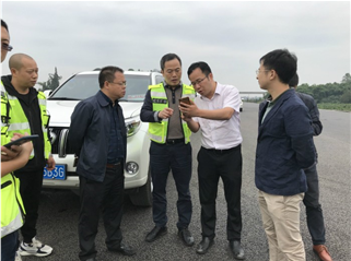 10月11日,成渝公司建设管理部经理岳建洪到成乐扩容项目施工现场督导成乐扩容试验段右幅路面施工质量工作,成乐公司总经理黄文悦陪同督导